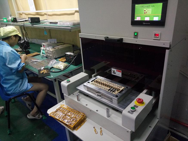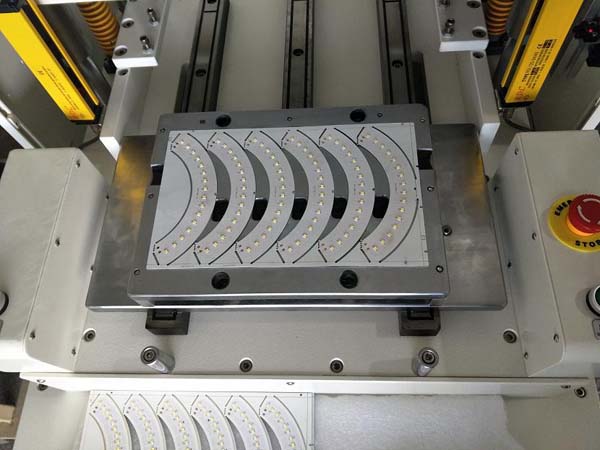 工作中下模采用自動推拉,減輕勞動強度,更提高安全度,同時取放成品十分方便。應用于電子行業如手機板,內存卡,手機軟線路等分割。對于大批量通槽式PCB基板和軟性線路板(FPC)的分割,效率尤為顯著。配備安全感應裝備。配模具使用,換模具簡單方便。