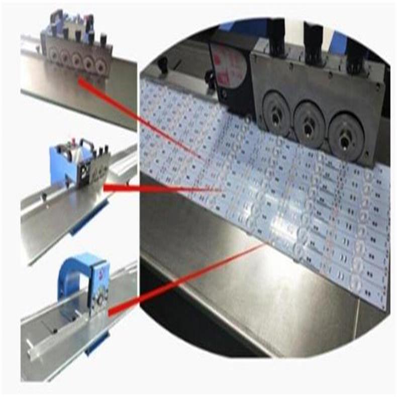 根據連板尺寸調節定位導軌,將要進行分切的V-CUT聯板的對準放板導軌,然后手推入刀口,滾刀自動帶走V-CUT連板帶走并分切,從而將多聯板V-CUT線路板分離。