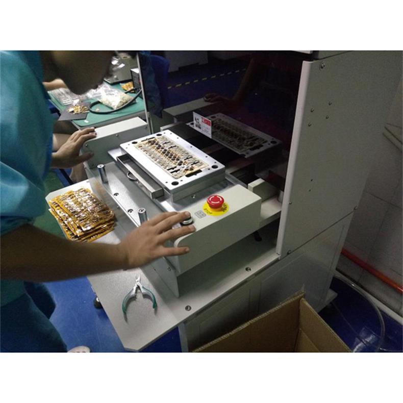 工作中下模采用自動推拉,減輕勞動強度,更提高安全度,同時取放成品十分方便。應用于電子行業如手機板,內存卡,手機軟線路等分割。對于大批量通槽式PCB基板和軟性線路板(FPC)的分割,效率尤為顯著。配備安全感應裝備。配模具使用,換模具簡單方便。