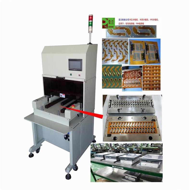 工作中下模采用自動推拉,減輕勞動強度,更提高安全度,同時取放成品十分方便。應用于電子行業如手機板,內存卡,手機軟線路等分割。對于大批量通槽式PCB基板和軟性線路板(FPC)的分割,效率尤為顯著。配備安全感應裝備。配模具使用,換模具簡單方便。