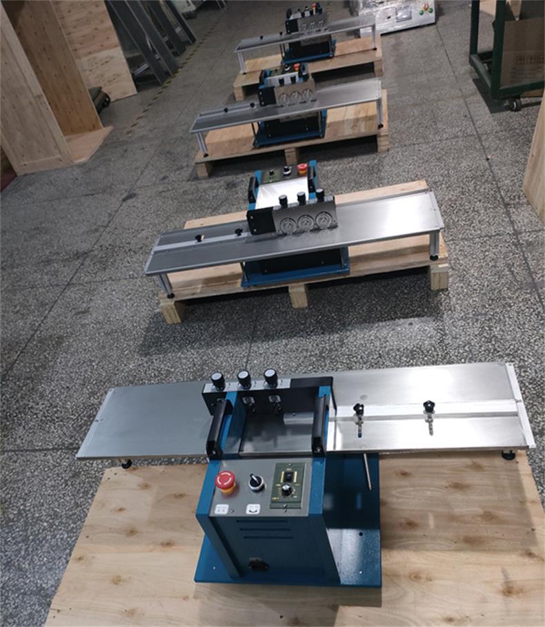 1、操作簡單,速度快捷。本機器采用獨特的單V槽連板多切割方法,電路板切割由3組刀片完成,上下兩片為一組,構成一個切割單元組。分別是ABC、三組。整個切割過程分為三個階段,A組刀片先切割電路板V槽部分的40%,接著B刀片再次從A刀片切過的槽中碾過,再次完成V槽部分40% 的切割量,最后由C刀片切割最后的20% 并修光。